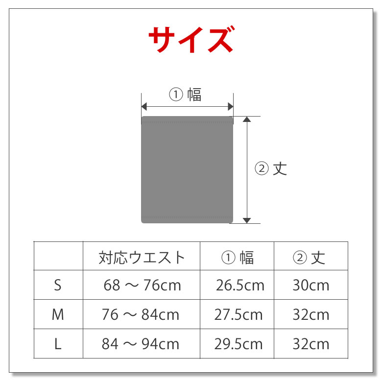 サイズ | Sサイズ (対応ウエストサイズ68 ~ 76cm) Mサイズ (対応ウエストサイズ76 ~ 84cm) Lサイズ (対応ウエストサイズ84 ~ 94cm) |