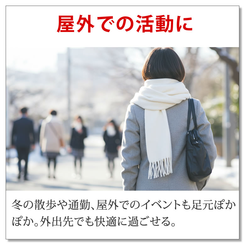 | アウトドアブランドのラドウェザー から、 吸湿発熱のレッグウォーマーが登場! 厚手のニット生地が冷気をしっかりガード。吸湿発熱素材により、動くたびに自然なぬくもりを感じられる。 ウールを使用し、優れた保温性と吸放湿性で足元をやさしく包み込み、 内側はふんわりとした裏起毛で、素肌に触れても心地よい肌ざわり。 48cmのロング丈で足首から膝下まで広範囲をカバーできるゆったりサイズなのでメンズの方にも快適に使用可能。 丈の調整も自在で、さらに着脱がラクでズボンの上からでもサッと重ねられるので、外出時や室内でも手軽に使えるのも嬉しいポイント。 伸縮性が高く締め付け感がなく、長時間の着用でもストレスフリー。 シンプルなデザインはどんなファッションにも馴染み、毎日のコーデに取り入れやすい。 寒い季節を快適に過ごすための一枚。 ■吸湿発熱で暖かい 汗や湿気を吸収して発熱する吸湿発熱素材で足元からじんわりと体全体を温める。 ■冷たい空気をガード 糸と糸の密度が高く編まれた厚手ニット生地が冷えをブロック。内側の体温を逃がさない。 ■暖かさと心地よさを両立 優れた保温性と、蒸れにくい快適さを兼ね備えた天然ウールがやさしく包み込む。 ■ロング丈でしっかりカバー 足首から膝上まで全体を包むゆったりサイズ。男女兼用で快適に使える。 ■やさしい肌ざわり 裏側はふんわり裏起毛。触れた瞬間、ほっとするぬくもり。 ■信頼できる確かな性能 発熱温度と温度の保持性能は検査機関による試験で認められているから安心。 ■好みの丈にアレンジ自在 温めたい箇所に合わせて伸ばしたり縮めたりかかとまでカバーしたり、自由に長さ調整OK。 ■どこでもラクラク着脱 ズボンの上からでもサッと重ねて即あったか。持ち運びにも便利で、出先でもぽかぽか快適。 ■締め付けないフィット感 ゆったりなのに締め付けない、伸びやかな伸縮性。 やさしく包んで、ストレスフリー。 ■誰でも使いやすいデザイン ファッションや年代性別を選ばないシンプルなデザインだから誰でも使える。 ■屋外での活動に 冬の散歩や通勤、屋外でのイベントも足元ぽかぽか。外出先でも快適に過ごせる。 ■オフィスで冷える足元に サッと履けて体温調整しやすい。夏場には冷房で冷える時にも使えて、季節を問わず一年中活躍。 ■倉庫や農作業に 底冷えする倉庫作業や、寒空の下での農作業にもぴったり。しっかり防寒して体を守る。 ■リラックスタイムに おうちでくつろぐ時間も、足元からじんわりあたたか。暖房に頼りすぎず、省エネにも役立つ。 ■就寝時に 布団の中でも足先が冷えて眠れない夜に。ふんわり温もりが続き、朝までぐっすり快眠へ。 ■冷えた廊下やキッチンに ヒヤッとする廊下や寒いキッチンでの家事も足元を温めながら快適に。毎日の動作をサポート。 | |