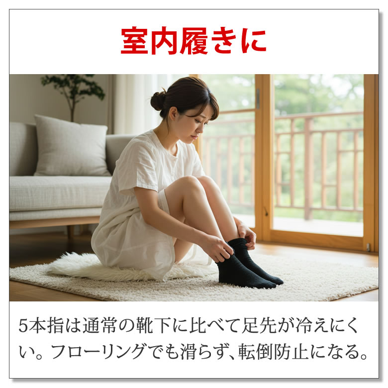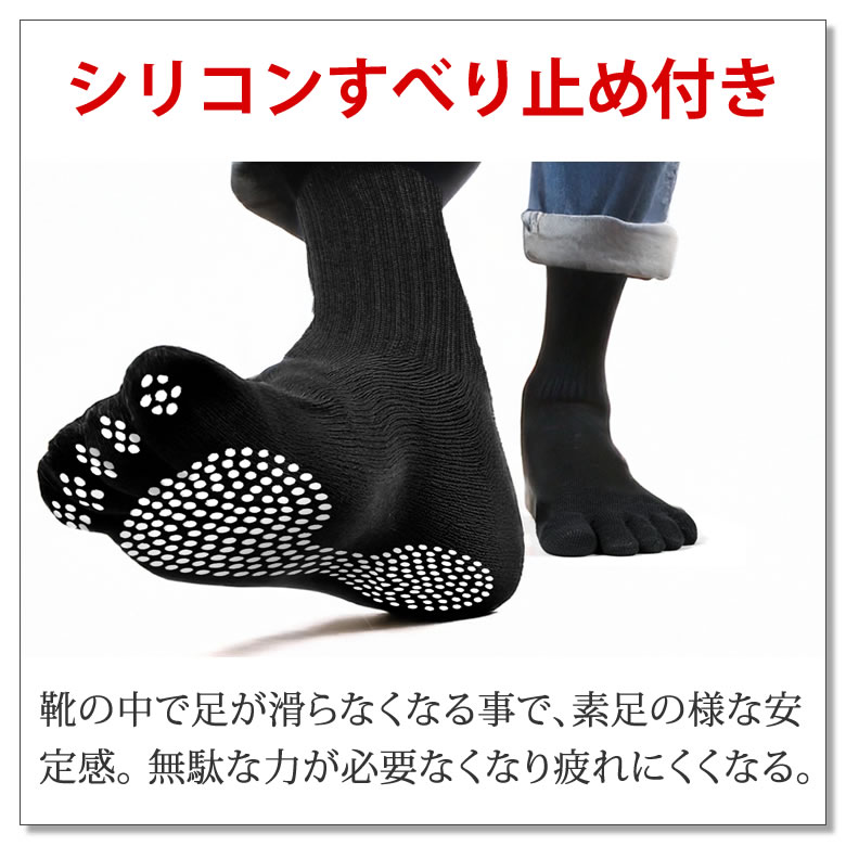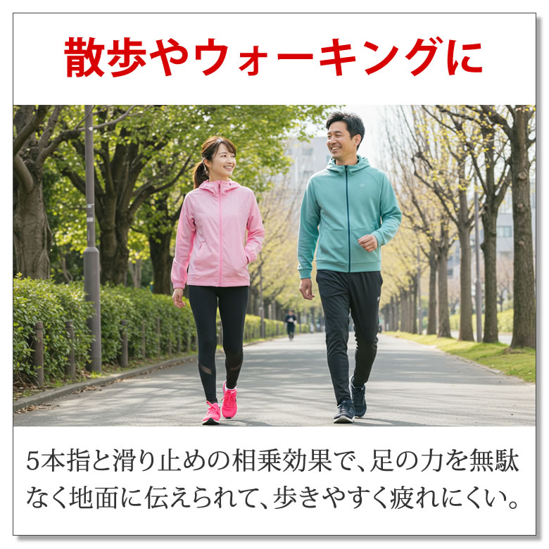 | アウトドアブランドのラドウェザー から、中厚手の5本指ソックスが誕生。 長時間歩く登山やアクティブな日常にぴったりの中厚手5本指ソックス。 しっかりしたクッション性と耐久性で、足への衝撃を和らげつつ、 部分的にパイル地を配置してムレや締めつけ感を抑える。 指先が自由に動く5本指設計とシリコンすべり止めで、 まるで素足のようなグリップ力と安定感を実現。 疲れにくく踏ん張りも効く。 さらに、吸水速乾性と抗菌防臭加工で、汗をかいてもニオイ知らず。 日本の検査機関でその性能も実証済。 摩耗に強いナイロン糸を使い、足首には適度な着圧サポートも。 日常からアウトドアまで頼れる2足セットで、コスパも抜群。 ■ハードに使える中厚靴下 耐久性、クッション性が高いしっかりした中厚手素材で、登山などのハードユースに使える。 ■部分パイルで足を保護 パイルの有りと無しを部位によって使い分け。足をしっかり保護するが、窮屈さは感じない。 ■シリコンすべり止め付き 靴の中で足が滑らなくなる事で、素足の様な安定感。 無駄な力が必要なくなり疲れにくくなる。 ■しっかり地面を掴む5本指 5本の指を独立して動かせるので、足元が安定。踏ん張りが利いてパフォーマンスもアップ。 ■抗菌防臭加工で臭わない 優れた抗菌加工で雑菌が繁殖せず、臭いを防止。 長時間靴を履き続けて蒸れても匂わない。 ■その性能は実証済 日本の検査機関の試験で試験を行い、確かな抗菌防臭性能が実証されている。 ■吸水速乾で蒸れない 足の裏は1日で200mlの汗をかく。 汗を素早く吸収・発散する事で蒸れの不快感を軽減。 ■高耐久ナイロン素材 強度が高く摩耗に強いナイロン糸を使用。登山やスポーツなどの過酷な使用にも耐える。 ■着圧でサポート 足首に適度な着圧をける事で、登山などの長時間の運動も快適に行える。 ■2足セットでコスパ抜群 洗い替えにもなる2足セット。高機能靴下が2足でこの値段は、コスパ抜群。 ■散歩やウォーキングに 5本指と滑り止めの相乗効果で、足の力を無駄なく地面に伝えられて、歩きやすく疲れにくい。 ■通勤、通学に 無地なので、ビジネスにも使える。 登山用の優れた機能性は日常生活を格上げしてくれる。 ■室内履きに 5本指は通常の靴下に比べて足先が冷えにくい。 フローリングでも滑らず、転倒防止になる。 | |