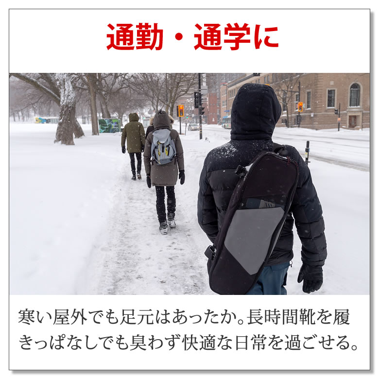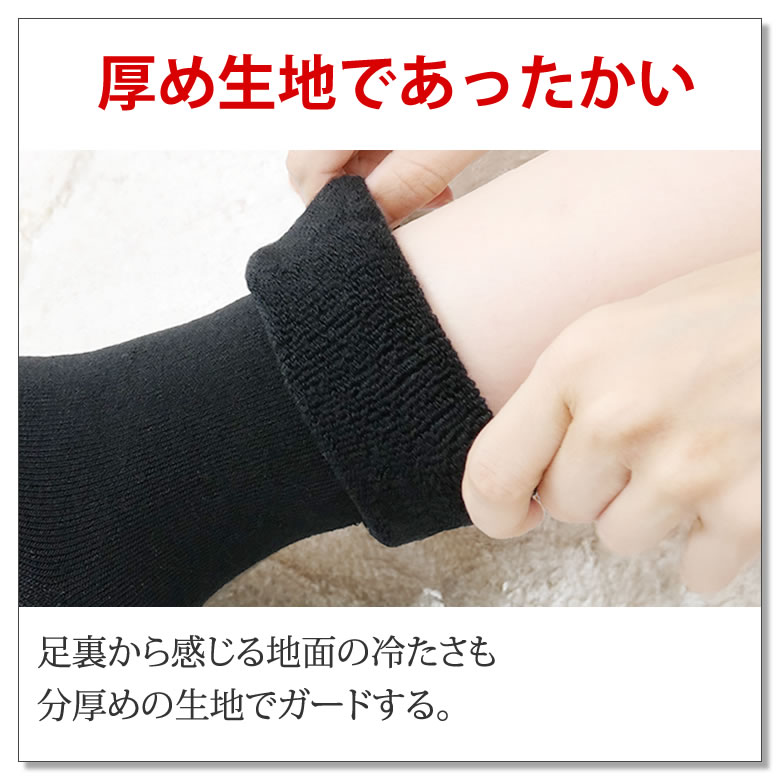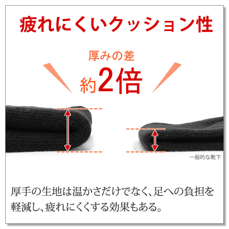 | アウトドアブランドのラドウェザー から、 吸湿発熱・抗菌防臭靴下のハイソックス丈が登場! 汗などを吸収して+2.5℃発熱する厚手の生地がふくらはぎからつま先まで包み込むのでショート丈よりも足の温度を保つことができ、足の冷えに悩む人にぴったり。 裏側は総パイルで肌触りも良く、高いストレッチ性で締め付けることなく快適。クッション性も高く足も疲れにくい。 抗菌防臭加工でいつでも清潔で、長時間靴を履いた時やブーツで蒸れた時の臭いが気になる人でも安心して履ける。 抗菌防臭・発熱温度・温度の保持性能は検査機関による試験で認められている。 性別や年齢、シーンを問わず履きやすいシンプルなデザインで2足セットだから 洗い替えにするも良し、家族と分け合うこともできる。 寒い時期の通勤・通学、おうち時間、アウトドアや屋外作業など、朝から夜まで毎日足元の冷えから守ってくれる強い味方。 ■吸湿発熱で+2.5℃暖かい 汗などを吸収して発熱する吸湿発熱素材がつま先から、ふくらはぎまで足全体を温める。 ■厚め生地であったかい 足裏から感じる地面の冷たさも分厚めの生地でガードする。 ■ふくらはぎまで包み込む ハイソックス丈は、ショート丈に比べて肌を覆う面積が広く、足全体の温度を保つことができる。 ■疲れにくいクッション性 厚手の生地は温かさだけでなく、足への負担を軽減し、疲れにくくする効果もある。 ■肌触りなめらか 裏側は総パイルで、柔らかいタオルのような肌ざわりで包み込んでくれる。 ■2足セットでコスパ抜群 お得な2足セットだから、洗い替えにしたり家族で分け合って使うこともできる。 ■締め付けないストレッチ ストレッチ性が高く、足にフィットして快適な履き心地。 ■抗菌防臭で臭わない 長時間靴を履きっぱなしでもブーツで蒸れても、臭いの原因を根本からブロックして清潔。 ■信頼できる確かな性能 抗菌防臭・発熱温度・温度の保持性能は検査機関による試験で認められているから安心。 ■誰でも使いやすいデザイン ファッションや年代性別を選ばないシンプルなデザインだから誰でも使える。 ■シーンを選ばない ロゴは靴を履けば見えない足裏のみ。黒無地靴下としてスーツや制服にも合わせられる。 ■通勤・通学に 寒い屋外でも足元はあったか。長時間靴を履きっぱなしでも臭わず快適な日常を過ごせる。 ■室内での冷え対策に フローリングの冷たさや、室内でも足先が冷えやすい人にもルームソックスとして活躍。 ■アウトドアや屋外作業に 釣りやツーリング、キャンプなどの野外活動、冬の屋外作業時も高い発熱性能でサポート。 | |