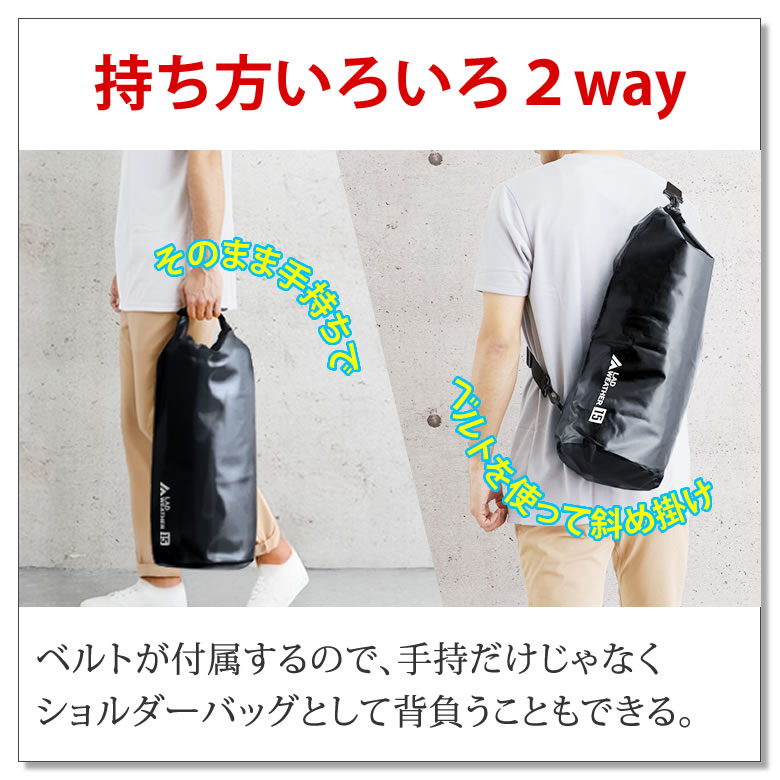 アウトドアから日常まで幅広く活躍する万能ドライバッグ。