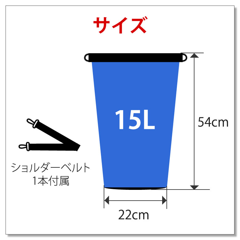 着替え一式にタオル、サンダルまでしっかり収まる15Lドライバッグは、