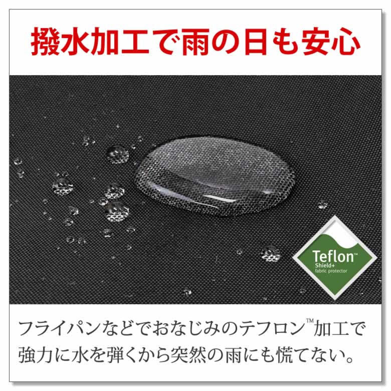 フライパンなどでおなじみのテフロンTM加工で強力に水を弾くから突然の雨にも慌てない。