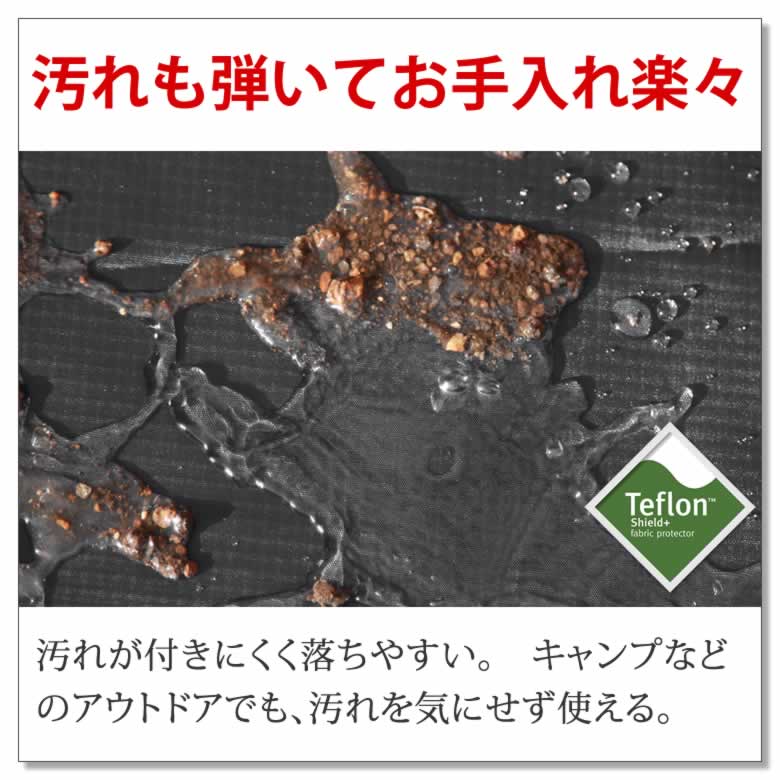表面にはテフロンTMファブリックプロテクタ加工を施し、