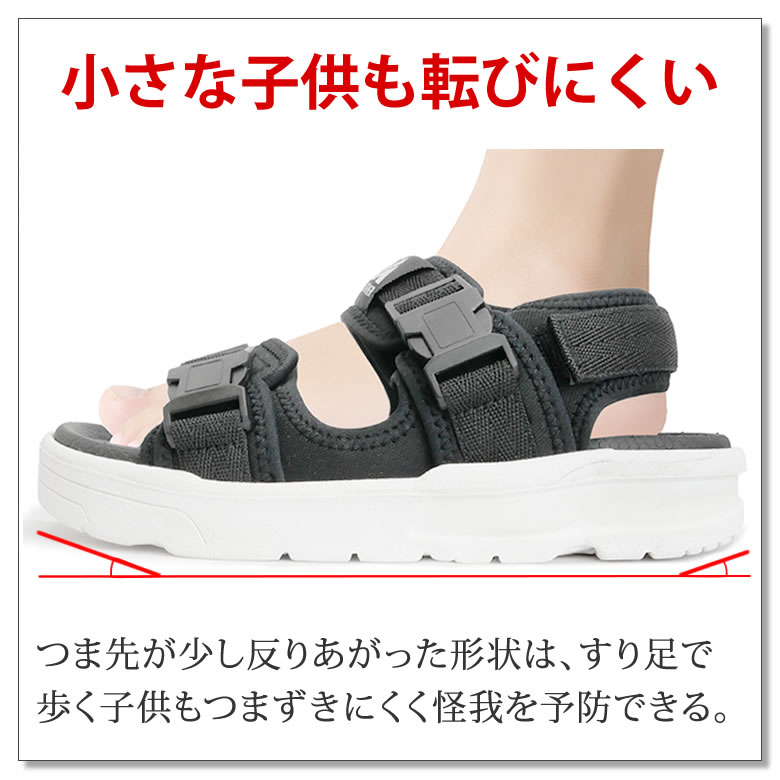 つま先が少し反りあがった形状は、すり足で歩く子供もつまずきにくく怪我を予防できる。