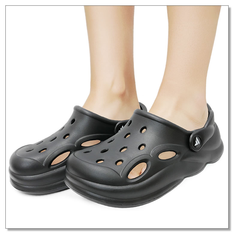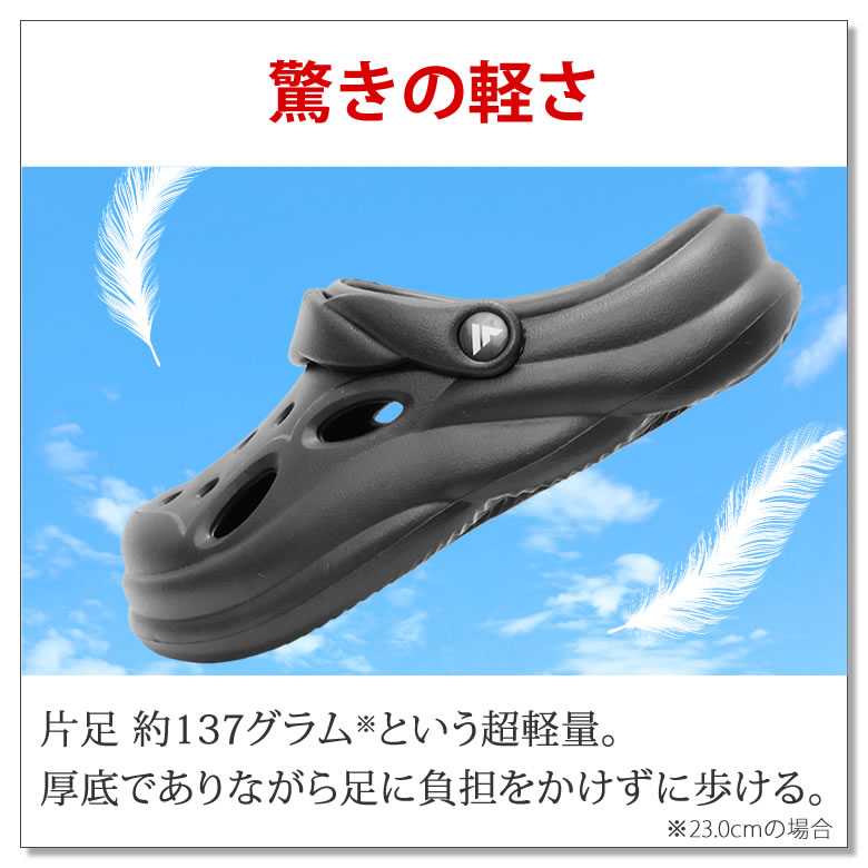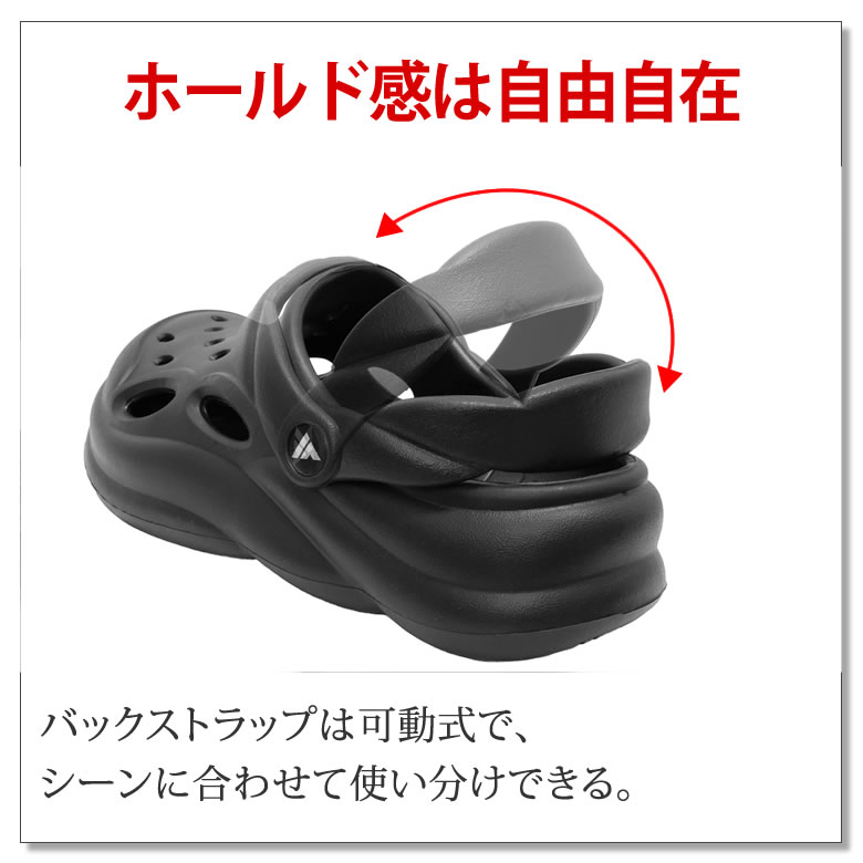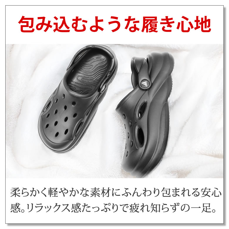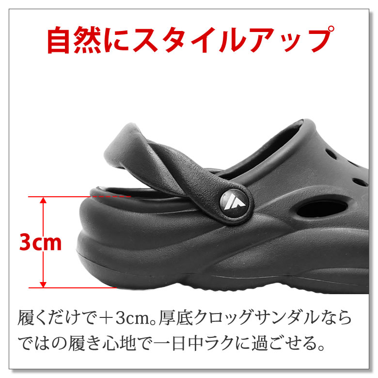 履くだけで+3cm。厚底クロッグサンダルならではの履き心地で一日中ラクに過ごせる。