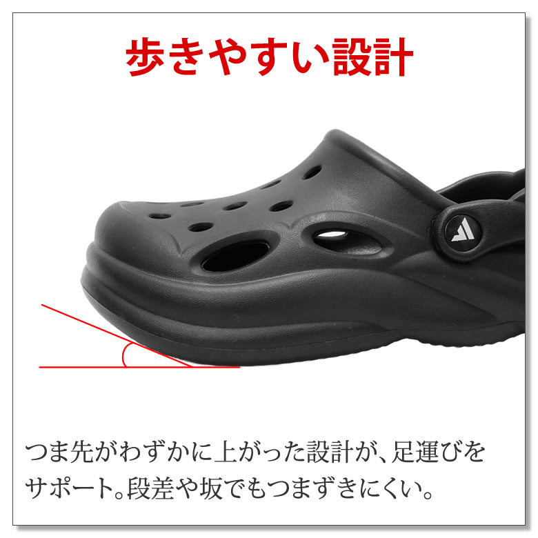 つま先がわずかに上がった設計と滑りにくいソールで歩行もスムーズ。
